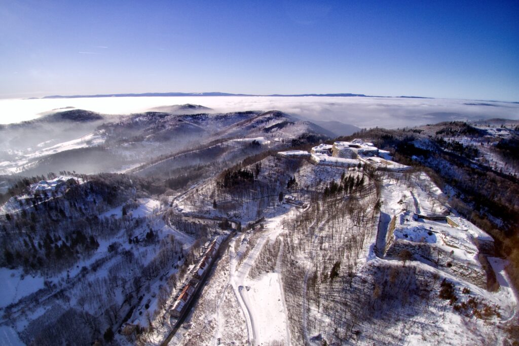 The fortress is characterised by its massive walls and sophisticated defence system, which made it virtually impregnable. The main structure, known as the donjon, is surrounded by several defensive rings. Throughout its history, the fortress has served not only military purposes, but also as a prison at times. Today, it is an important cultural monument and attracts numerous visitors as a museum and event venue. The Silberberg Fortress is a prime example of architectural adaptation to extreme topographical conditions and is an impressive testimony to 18th-century fortification architecture.