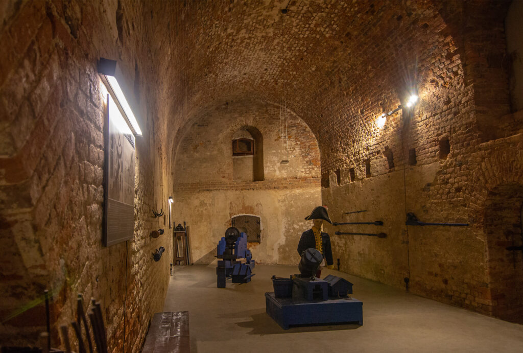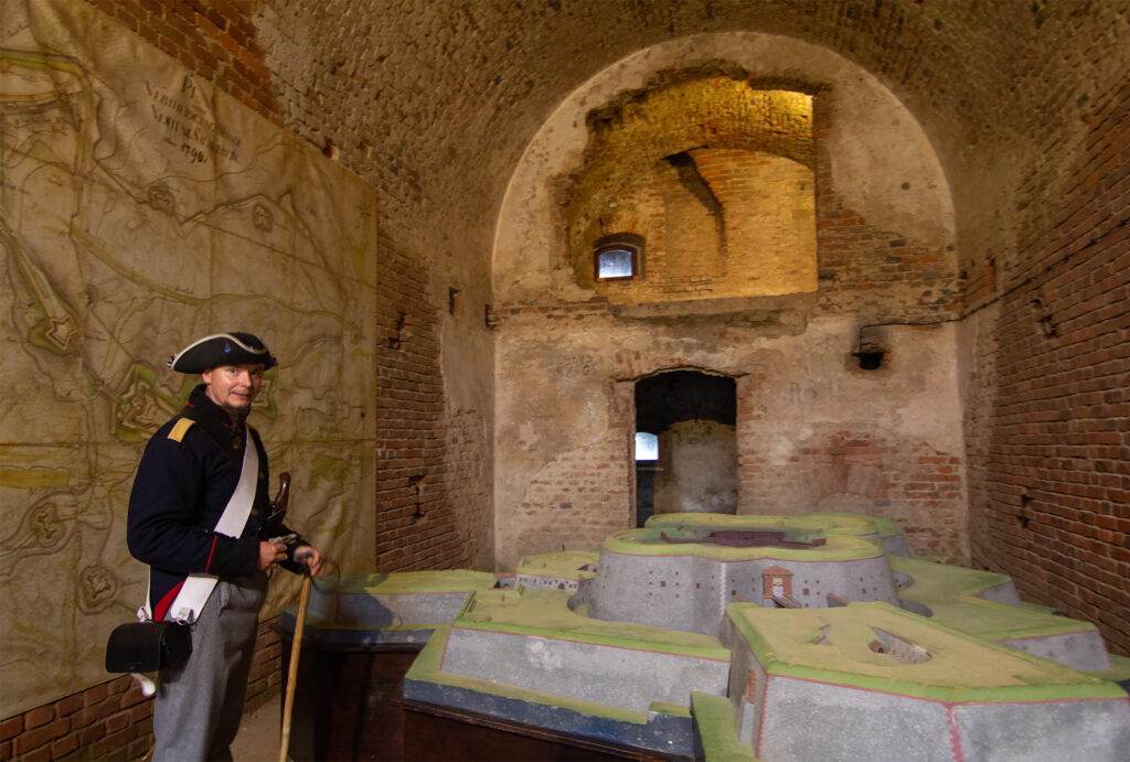 The fortress is designed as a complex system of bastions, casemates, tunnels and underground passages. At its centre is the donjon, a mighty round building with multi-storey casemates. Several defensive rings, ravelins and outer works surround the main structure and provide staggered protection against attacks. The connection of the individual structures by underground passages allowed soldiers and materials to move safely – even during sieges or artillery fire.